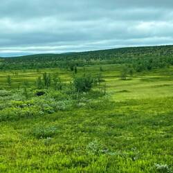 Ab Kautokeino fahren wir auf der relativ wenig befahrenen Straße 93 nach Süden. Landschaftlich ist die Strecke unspektakulär, sogar eher langweilig, niedrige Birken, Sümpfen und Tundra. Endlos weit kann man in die Ferne schauen, der Blick findet jedoch keinen Halt, keine Erhebungen ragen aus der eintönigen Landschaft hervor. Ab und zu kommen wir in an einem Seen vorbei. Trotz der Gleichförmigkeit beeindruckt uns immer wieder die Einsamkeit, Ruhe und Weite der Landschaft.