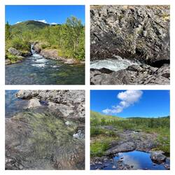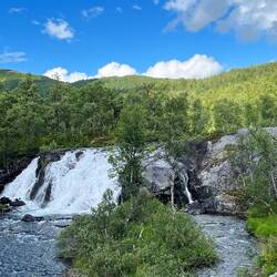 Wir machen eine Wanderung entlang des Wasserfalles der aus dem Skalsee rauscht und hier beim Parkplatz in den Vapstälven fliesst, es sind ja bloss