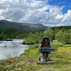Wir bleiben an einem Parkplatz zwischen norwegisch und schwedisch Skalmodal wo uns der alte „Holzmichel“ begrüsst.