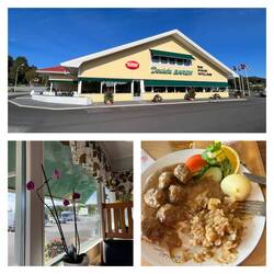 Unterwegs kehren wir im Restaurant „Docksta Baren“ ein. Wir nehmen das Tagesmenü; Köttbullar med potatis / Hackfleischklösschen mit Kartoffeln 😋