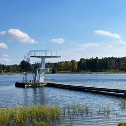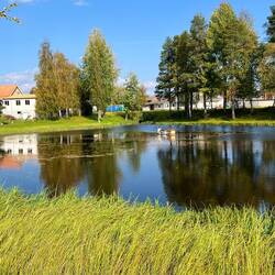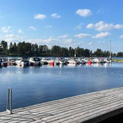 Wir spazieren heute nur um den Badesee, durch den Campingplatz und an den Kleinen Motorboot-Hafen am See Storuman in der Bucht „Luspsjön“.
