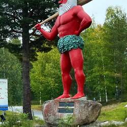 Zu sehen ist die Heldenfigur, ein stämmiger Waldarbeiter im Wappen von schwedisch- und finnisch Lappland.Read more