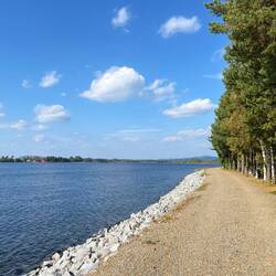 Die Sonne scheint vom meist blauen Himmel, über dem See liegt noch etwas Hochnebel…