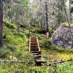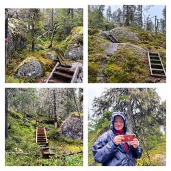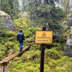 freigelegte Stolper-Wurzeln, verlegte Holzbohlen und Treppensteige…und…diese sind ausserordentlich rutschig…nein arschglatt…ups…🫢
