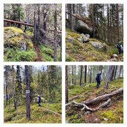 Lange bleiben wir nicht auf der geteerten Strasse und biegen links in den Wald zu einem der beiden Eingänge in den „Nationalpark Björnlandet“…also ins Bärenland!🐻…immer noch Süd-Lappland.