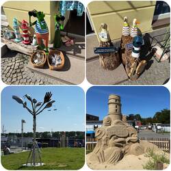 Wir belegen auf dem gutbesetzten Wohnmobilstellplatz „Am Fischereihafen“, wo gerade ein Kommen und Gehen herrscht, eine für uns geeignete Ecke. Leider gibt’s hier absolut keine schattenspendenden Bäume.