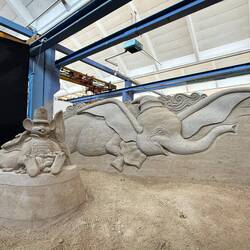 Gleich neben dem hiesigen Stellplatz befindet sich in einem riesengrossen, ausgedienten Werftgebäude die „Sandskulpturen Ausstellung“ die wir auch noch besuchen.