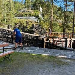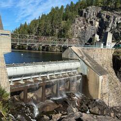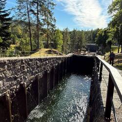 Nach der Abfahrt in Skien machen wir bei der dritten Schleuse von 1891, bei Ulefoss einen kurze Fotostopp.
