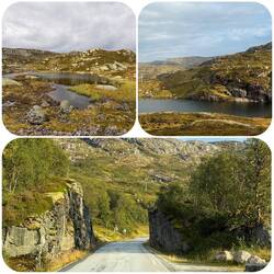 Nach der Ortschaft Brokke schlängelt sich die Strasse zwischen Seen und Bergen entlang, steile Berghänge rauf und runter, über luftige Hochgebirgsabschnitte bis auf 1’050 Meter und durch üppige Siedlungen die da überall in und auf den Felsen kleben.