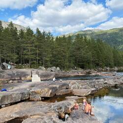 Hm…da war doch noch was? Ach jaaa…der Nomeland Strand! Eine herrliche Flusslandschaft, mitten im Wald, wo der Fluss zwischen glatt geschliffenen Felsen durch plätschert und jenste Bademöglichkeiten bietet, traumhaft!