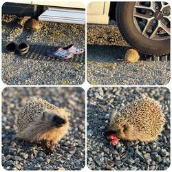 Während des Essens bekommen wir noch unverhofften stacheligen Besuch. Gar nicht scheu traut er sich bis zu uns. Klar…auch er bekommt etwas ab vom Fleisch🦔😅