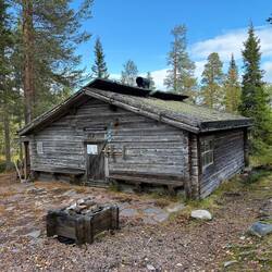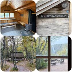 Nach erreichen einer Anhöhe mit einer Schutzhütte und tollem Ausblick auf den Wasserfall „Njupeskär“ hat uns mittlerweile die dunkle Regenwolke eingeholt. Wir warten den Regenschauer in der Hütte ab und essen dabei unser Frühstück.