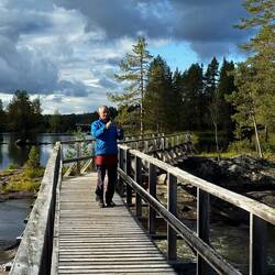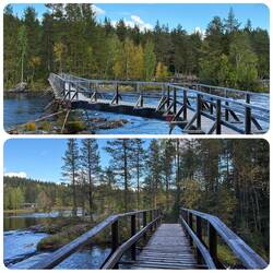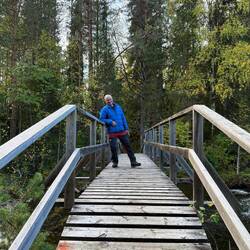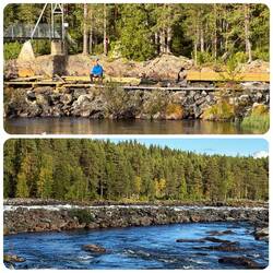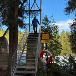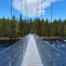Und dann stehen wir plötzlich mitten drin, auf der ersten Hängebrücke über den Mårdseleforsen.