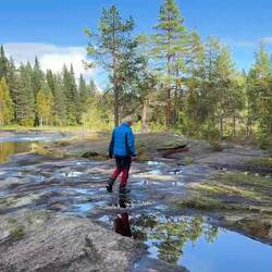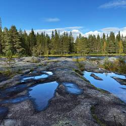 Auf den Felsen rundherum wachsen Moose und Flechten, und zwischen den Kiefern springen uns die unendlich vielen Pilze fast an. Die kleinen Inseln weisen eine reiche Flora auf wo man jede Pflanze einzeln begutachten möchte.