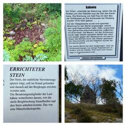 Darum gibts auch am Wegesrand immer mal wieder was zu entdecken; zum Beispiel: die Ruinen von drei Kalköfen von 1819, deren Reste man unterhalb der Böschung im Gebüsch entdecken kann.