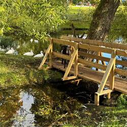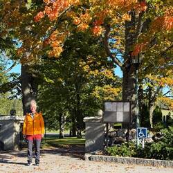 Nachdem wir für unsere „Perle“ den idealen Parkplatz gefunden haben, spazieren wir vorbei am wunderschönen Friedhof dessen alte Eichenbäume dem „goldenen Oktober“ alle Ehre machen.🥰