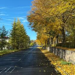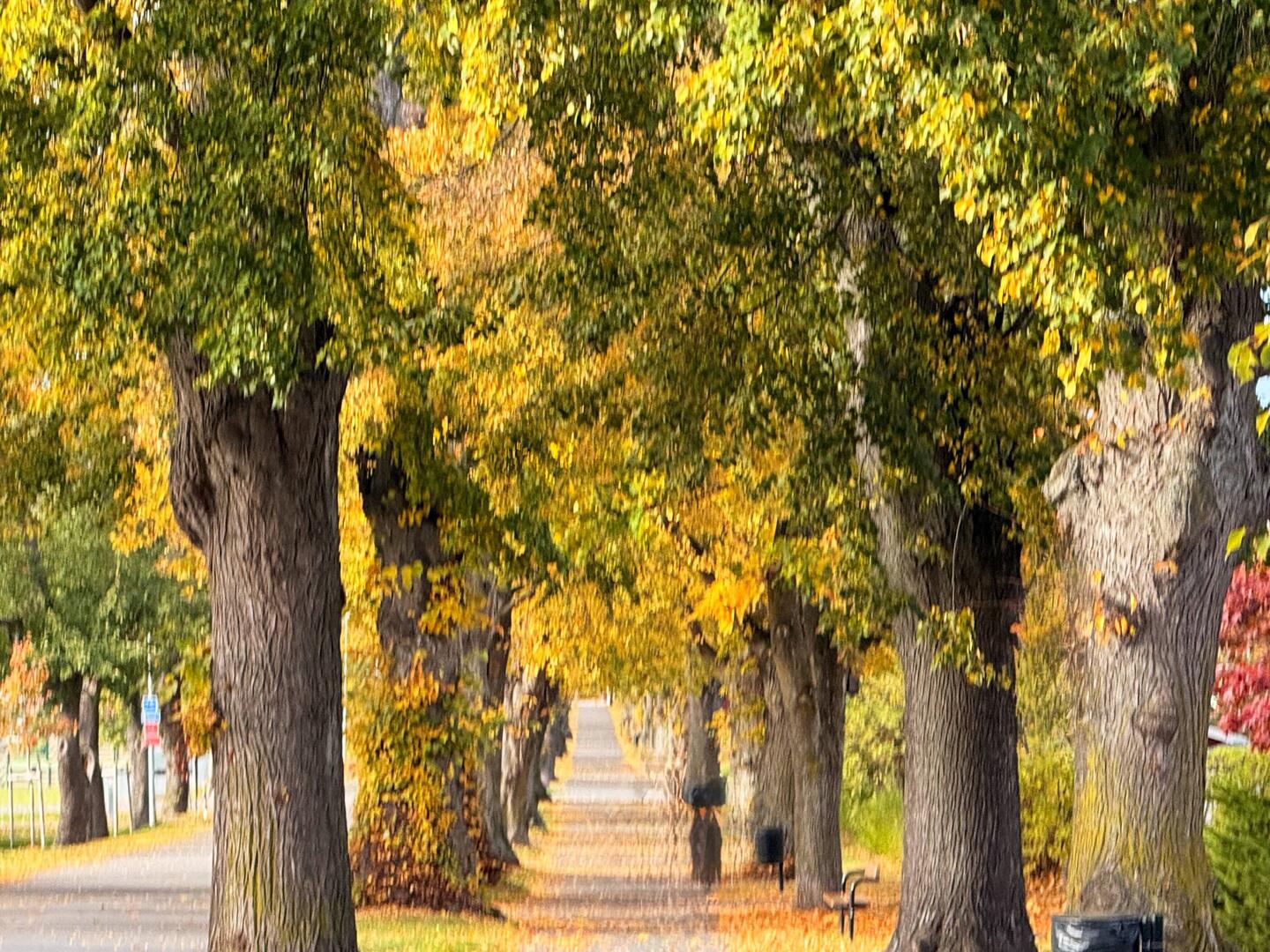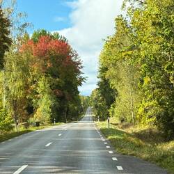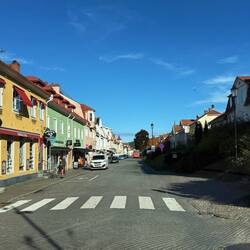 Also los…vom Stellplatz aus führt eine herbstliche Allee direkt hinauf zur Hauptstrasse. Diese zieht sich schnurgerade durch das Städtchen in dem rund 2‘700 Nasen leben.