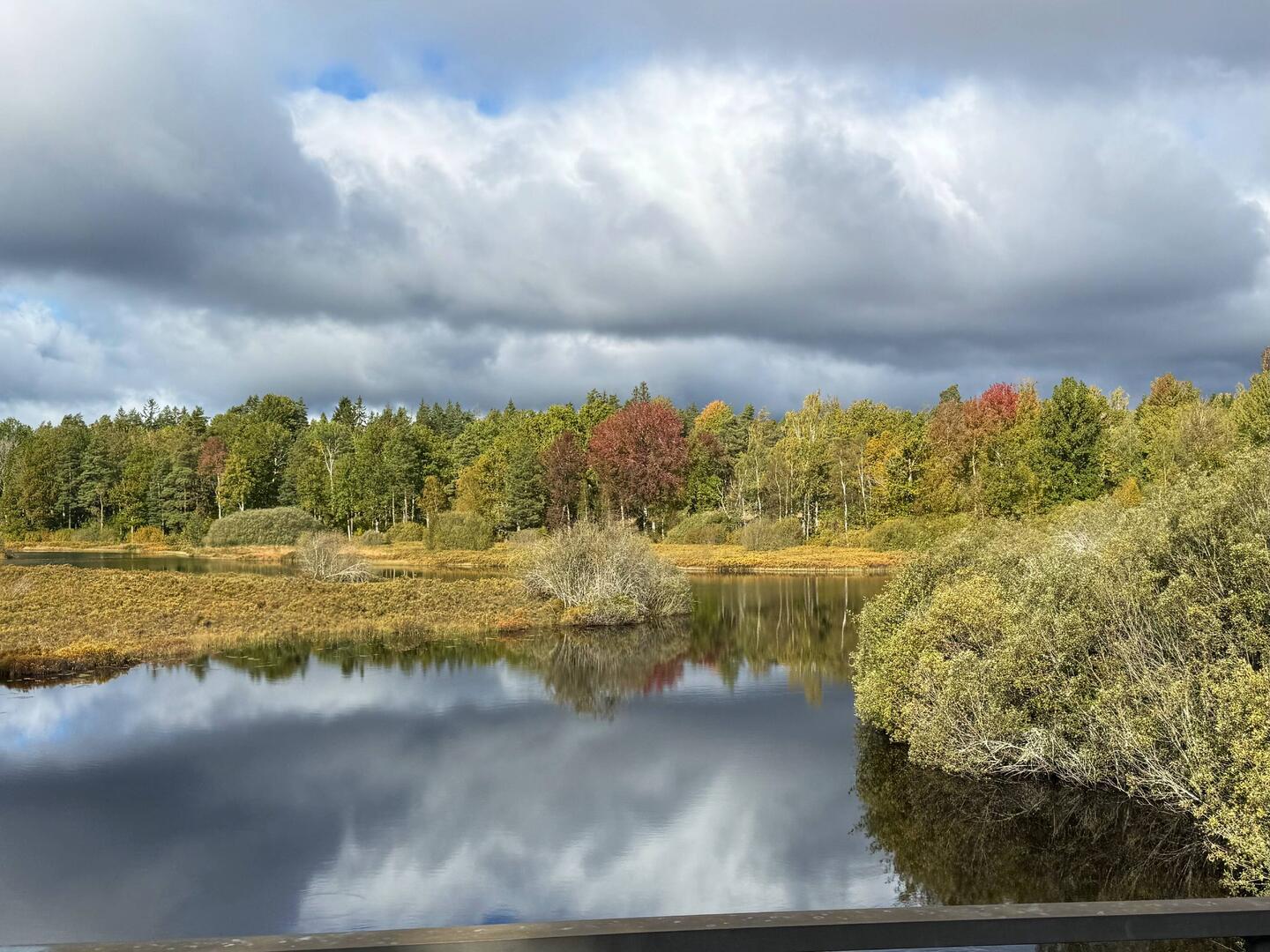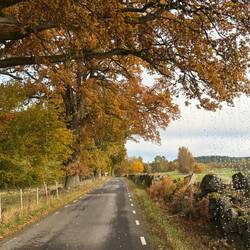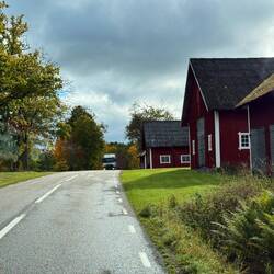 Jaaa…Tatatataaaa…es war bloss Hochnebel! Bei unserer Abfahrt reisst er ziemlich schnell auf und wir schaukeln durch das hügelige Småland das sich total im goldenen Herbst Modus präsentiert. Durch beschauliche Dörfer, durch sonnendurchflutete Wälder und vorbei an spiegelnden Seen.