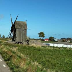 Der Fussweg führt über das Gelände, auf dem eine nachgebaute Mühle steht. Wir kommen vorbei an verschiedenen Häusern, die während der Sommersaison ein Kaffee, eine kleine Schmiede und ein Museum beherbergen.