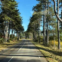 Bevor wir losfahren, gönne ich mir noch einen Abschiedsspaziergang durch den Kiefernwald zum Strand. Dort liegt die Bucht, sonnenüberflutet, das Wasser rollt sanft plätschernd über den feinen Sand.… Romantik pur.