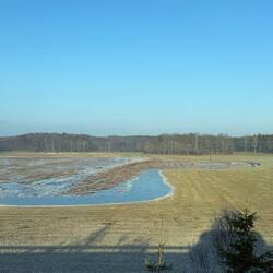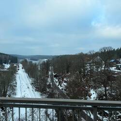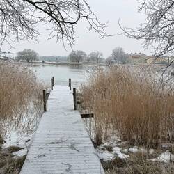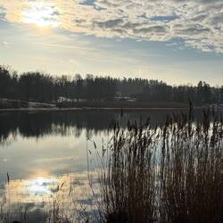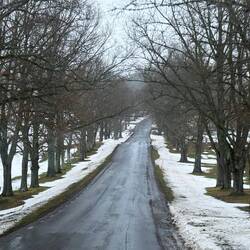 Bevor wir unser nächstes Ziel ins Visier nehmen, stapfe ich erst mal durch Schneematsch und das angrenzende Naherholungsgebiet.