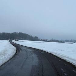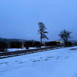 Die Aussentemperaturen zeigen ständig zwischen 0-3 Grad, was der winterlich weissen Landschaft zusetzt.