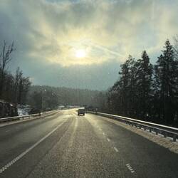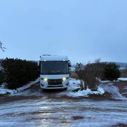 Ein leichter Nieselregen begleitet uns den ganzen Tag weiter Richtung Süden, während braune, matschige und sich langsam ausdünnende Schneewälle den Strassenrand dekorieren…eher Herbstblues als Winterwunderland.🥺