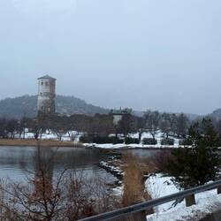 Und im Nebel hat man das leise Gefühl, dass die Burg noch immer alles im Blick hat..uns auf dem Stellplatz ebenso wie die Fähre, die sporadisch und beinahe höflich leise hin und her gleitet.