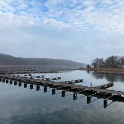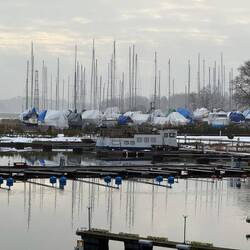 Der Jachthafen liegt still und ordentlich eingemottet da,