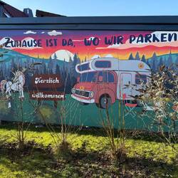 Nach exakt 333 Kilometern rollen wir auf den Wohnmobilstellplatz in Ladenburg.