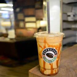 Im „Esspresso House“ trinken wir heute, weil immer noch etwa +5 Grad ist, ein „geeister Tee mit Honig und Karamell“…lecker😋