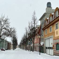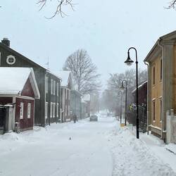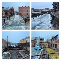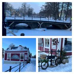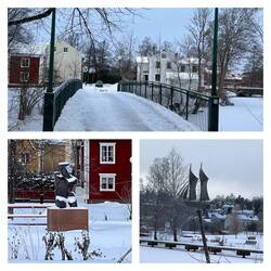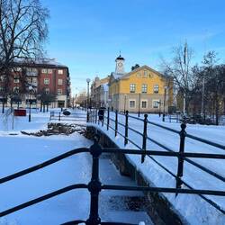 Um die gemütlich wirkende Fussgängerzone mit einigen alten Holzhäuser schlängelt sich der Kanal „Varnan“ der zur Zeit völlig zugefroren ist. Gefühlt alle paar Meter verbindet eine Fussgängerbrücke die beiden Stadtteile.