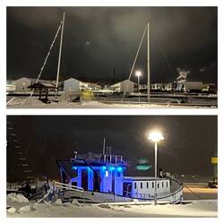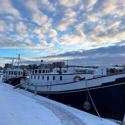 Am 18. Juni 2005 war die Jungfernfahrt der „Christine af Bro", sie ist seither eine Touristenattraktion und liegt nur wenige Meter vor uns an der Quaimauer winterfest vertaut. Leider sieht man von dem Schiff momentan nicht viel, es ist total in weisse Folie eingepackt.