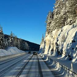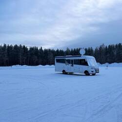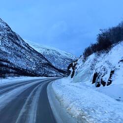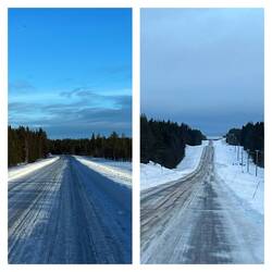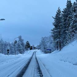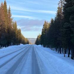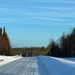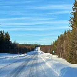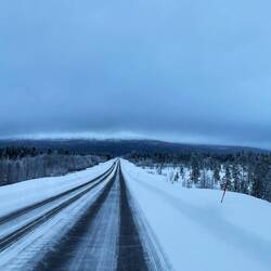 Während der Fahrt auf der E45 mitten durch die lappländischen Wälder, weiter Richtung Norden frage ich mich, ob es wohl auch schon mal einer gewagt hat, diese Strasse, sprich Eispiste mit den Schlittschuhen abzufahren?