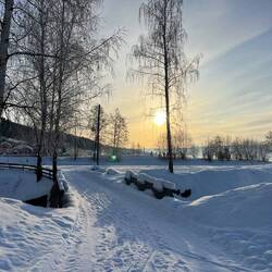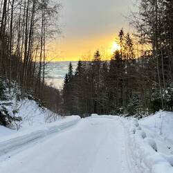 Es ist eine weitere wunderschöne Winterfahrt. Die winterliche Tour führt uns durch eine Seeenlandschaft deren Gewässer mehrheitlich gefroren sind, durch Wälder wo die Sonne zwischen den Bäumen durchscheint und vorbei an kleinen eingeschneiten Siedlungen.
