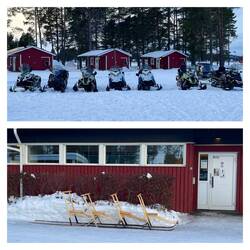 Da der Markt im 3 Kilometer entfernten Zentrum von Jokkmokk stattfindet, fragen wir an der Rezeption nach einem Taxi, am liebsten das „Motorschlitten-Taxi“.