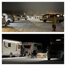 Mittlerweile haben es sich einige Camper vor ihren Womo’s gemütlich gemacht.