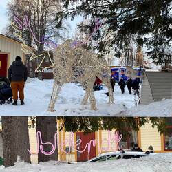 Der Umzug wurde gerade von einer vierköpfigen Samifamilie mit genau sovielen Rentieren abgehalten, dabei haben sie samische Volkslieder zum besten gegeben. Ab und an hat sich irgendwo ein Hund mit eingestimmt🫣