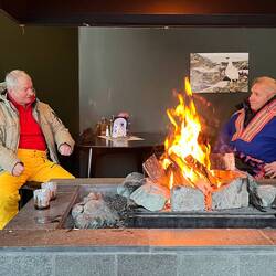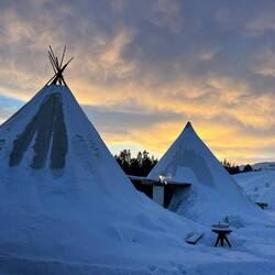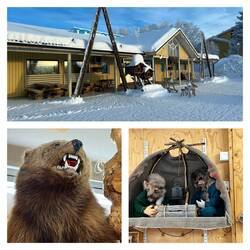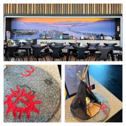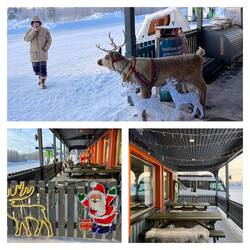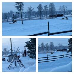 Vom CP aus sehen wir am Hügel in der Nähe, dass sich da ziemlich viele Menschen tummeln. Es soll da ein Sami-Restaurant „Sami Siida“ geben und ein Gehege mit Rentieren.