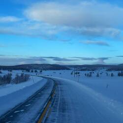 Ja und wir schlagen uns weiter auf der E45 durch die weisse Hölle Lapplands.