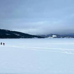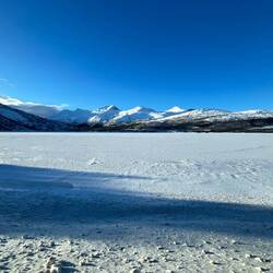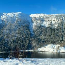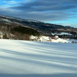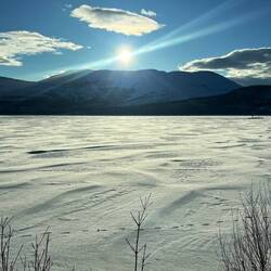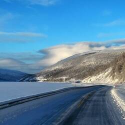 Dieser folgen wir bis nach Åkrestrømmen, immer dem zugefroren Storsjøen entlang.