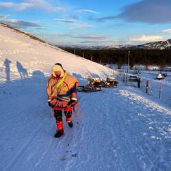 Die vielen Menschen die wir aus der Ferne beobachtet haben ist ein Kindergarten der hier die Rentiere füttern und streicheln darf und anschliessend geht’s auf die Schlittelpiste.