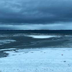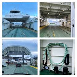 Windböen haben es ihm heute nämlich auf der spiegelglatten Strasse nicht gerade leicht gemacht unsere „Perle“ immer mitten auf der Fahrbahn zu halten. Apropos „zu halten“ der Fährkapitän dürfte heute auch seine Mühe gehabt haben das Schiff auf Kurs zu halten.