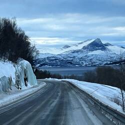 Danach Cruisen wir entlang zerklüfteter Küsten, gigantischer Berge und glitzernder Fjorde auf der E6 bis nach Olderfjord wo wir die Strecke nach Tromsø abkürzen und wieder mal mit der Fähre weiter schippern bis nach Lyngseidet.