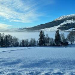 Ab Masi hat es die Sonne tatsächlich geschafft den Nebel zu „bezwingen“ und auf dem Rest der Fahrt dürfen wir sonnenbestrahlte Winterlandschaft geniessen.