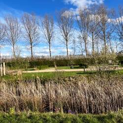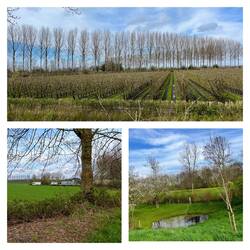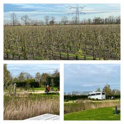Eingekreist zwischen einigen Dörfern liegt der „Camperpark de Bloesem“ zwischen grossen Apfel-und Birnenplantagen und Ackerland. Die ganze Landschaft ist durchzogen von jensten Entwässerungsgräben und Kanälen.