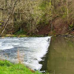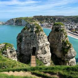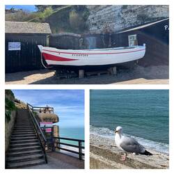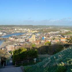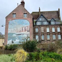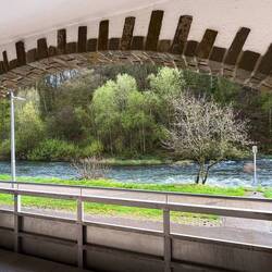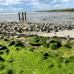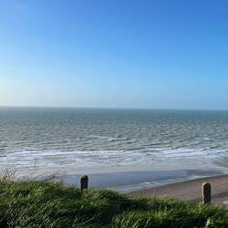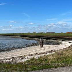 Weiter geht’s, diesmal am Fusse des Deiches. Irgendwann sehen wir eine Stiege die da hochführt.