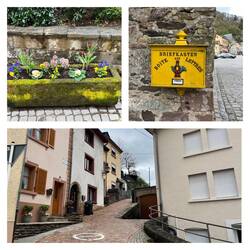 Hier fallen sofort die in Form gebrachten Linden entlang der gepflasterten Strasse auf und im Dorfzentzrum ist’s der Kastanienbaum, weil er österlich dekoriert ist.