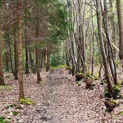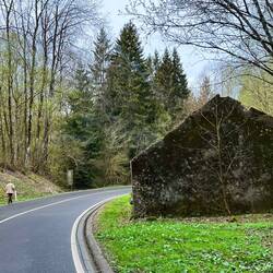 Wie es heute eben so ist, kaum im Wald beginnt es schon wieder zu tröpfeln. Nun das macht mir noch nichts aus. Vorsichtshalber schlage ich bei einer Waldkreuzung einen Weg ein von dem ich vermute, dass er mich zum Womo zurück führt.