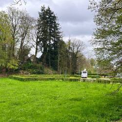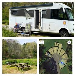 Um die Mittagszeit gelangen wir auf einen Stellplatz, ein ehemaliger Fussballplatz in einem Waldstück bei